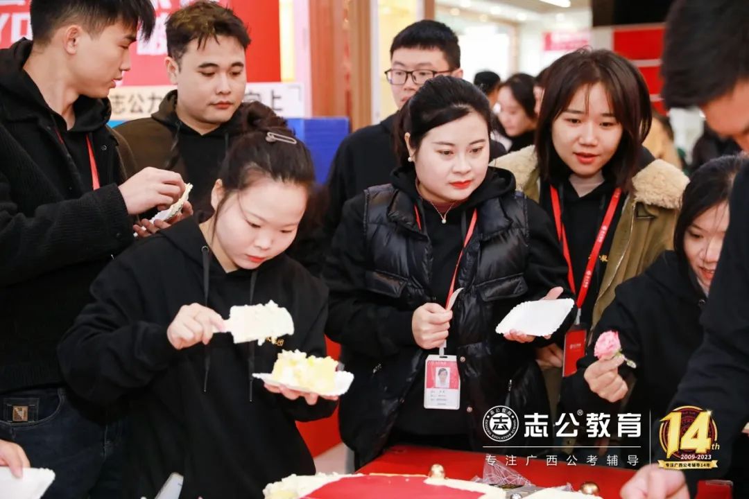 這個蛋糕不僅象征著志公走過的14個輝煌歲月,更代表了志公未來更加美好的明天。在場的所有員工都分享了這份喜悅和甜蜜,共同祝愿志公教育越來越好。