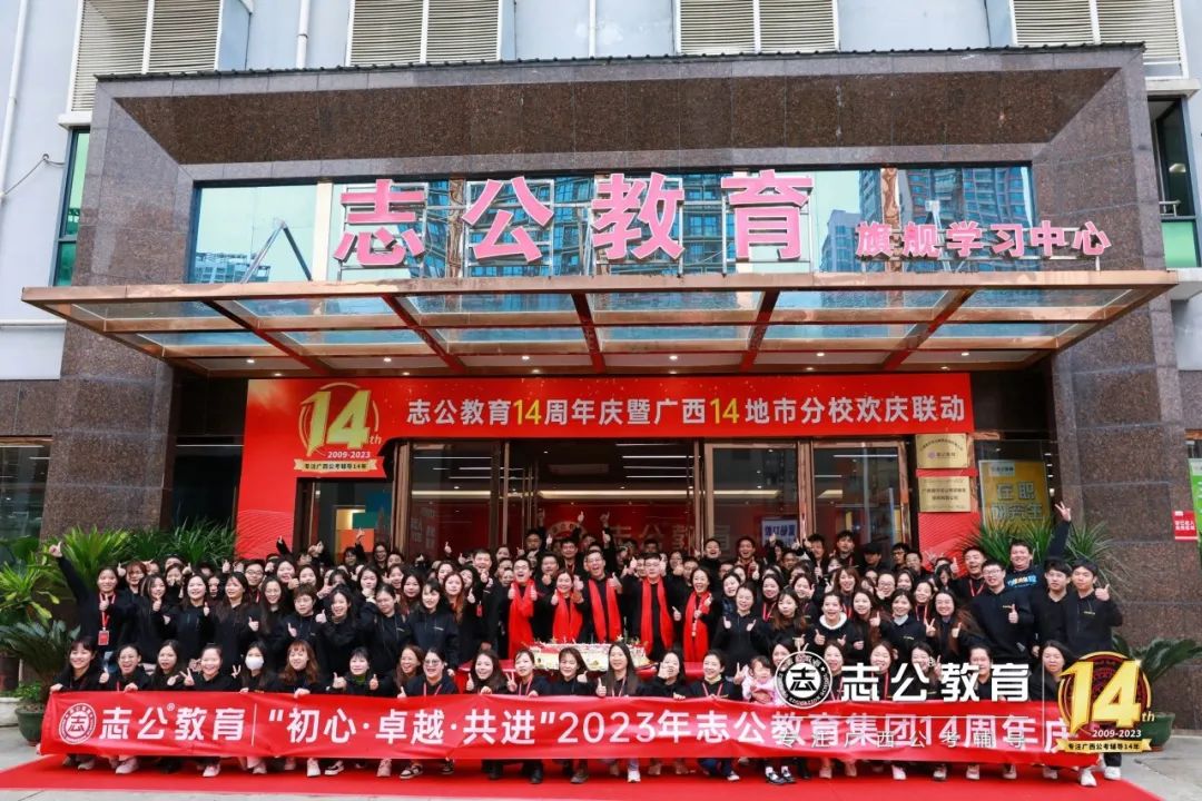 十四次春秋更替,十四載辛勤耕耘,又是一年冬季,志公教育迎來了他14周歲的生日。2023年12月16日,志公教育全體員工歡聚南寧總部,喜迎十四周年慶——“忘初心,求卓越,攜進(jìn)”,全體員工出席活動。