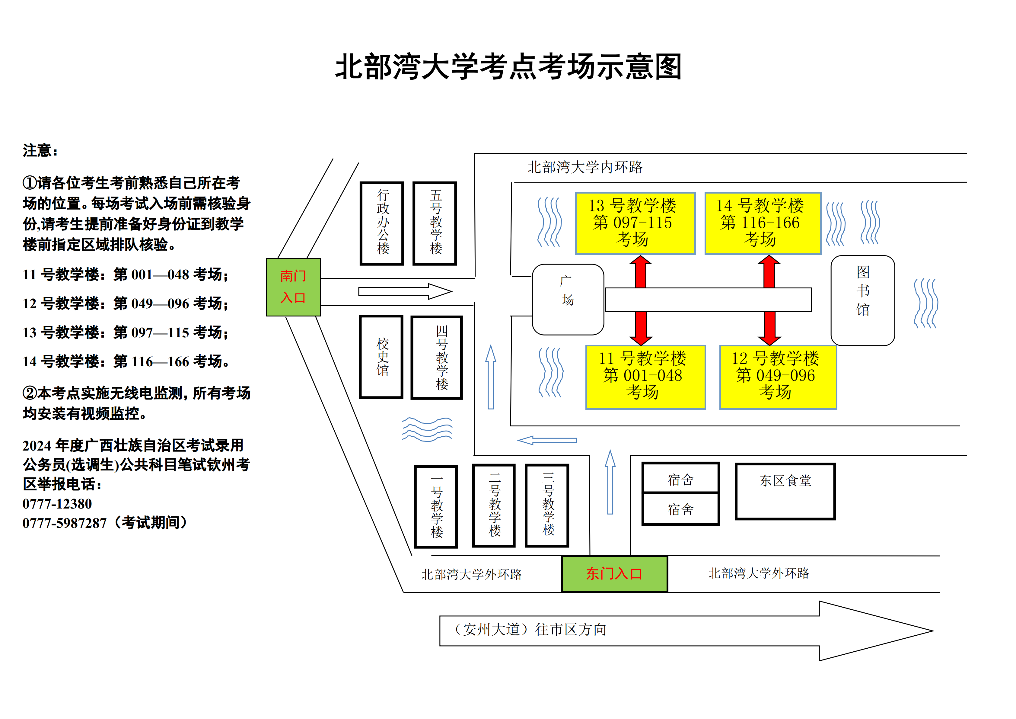 欽州考區(qū)共設(shè)兩個(gè)考點(diǎn),分別為北部灣職業(yè)技術(shù)學(xué)校考點(diǎn)和北部灣大學(xué)考點(diǎn)。請(qǐng)核對(duì)好本人準(zhǔn)考證上的考點(diǎn),兩個(gè)考點(diǎn)離市區(qū)有一定距離,請(qǐng)關(guān)注當(dāng)天天氣情況,充分考慮路途時(shí)間和天氣因素影響,每場(chǎng)考試前,提前60分鐘到達(dá)考點(diǎn)。(考點(diǎn)地址和具體考場(chǎng)安排請(qǐng)掃附后的二維碼查看)