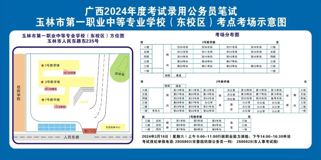 2024年選擇在玉林考區(qū)參加考試的考生人數(shù)較多,屆時(shí)考點(diǎn)區(qū)域內(nèi)的食宿、交通較為緊張。請?zhí)崆傲私獗救怂诳键c(diǎn)具體位置,熟悉考點(diǎn)周邊情況,根據(jù)考點(diǎn)的情況合理做好食宿安排和出行計(jì)劃。需要特別注意的是:玉林市第一職業(yè)中等專業(yè)學(xué)??键c(diǎn)是設(shè)在該校的東校區(qū)(人民東路東235號(hào));玉林市第一中學(xué)考點(diǎn)是設(shè)在該校的運(yùn)嶺路校區(qū)(二環(huán)北路1228號(hào))!