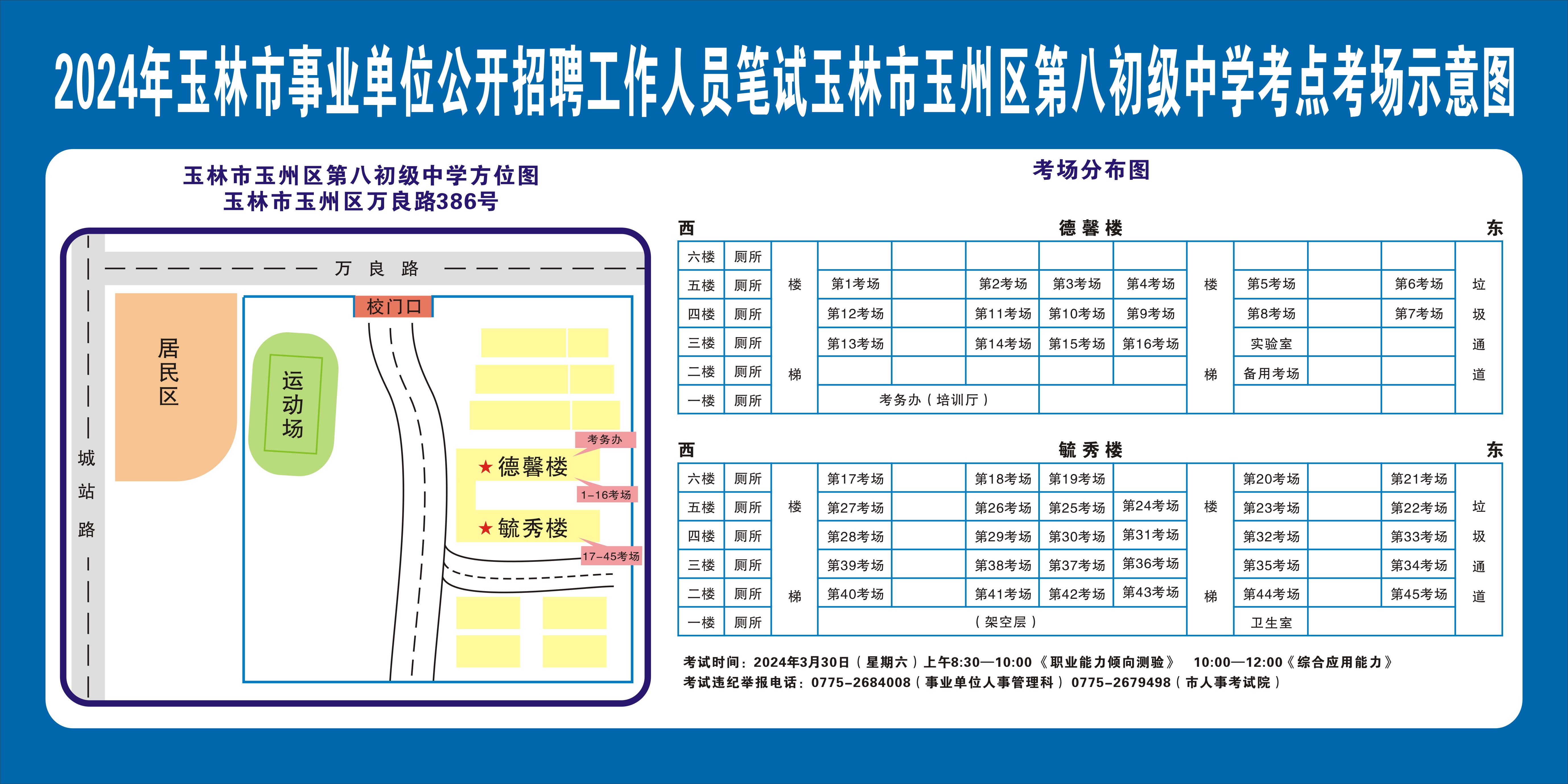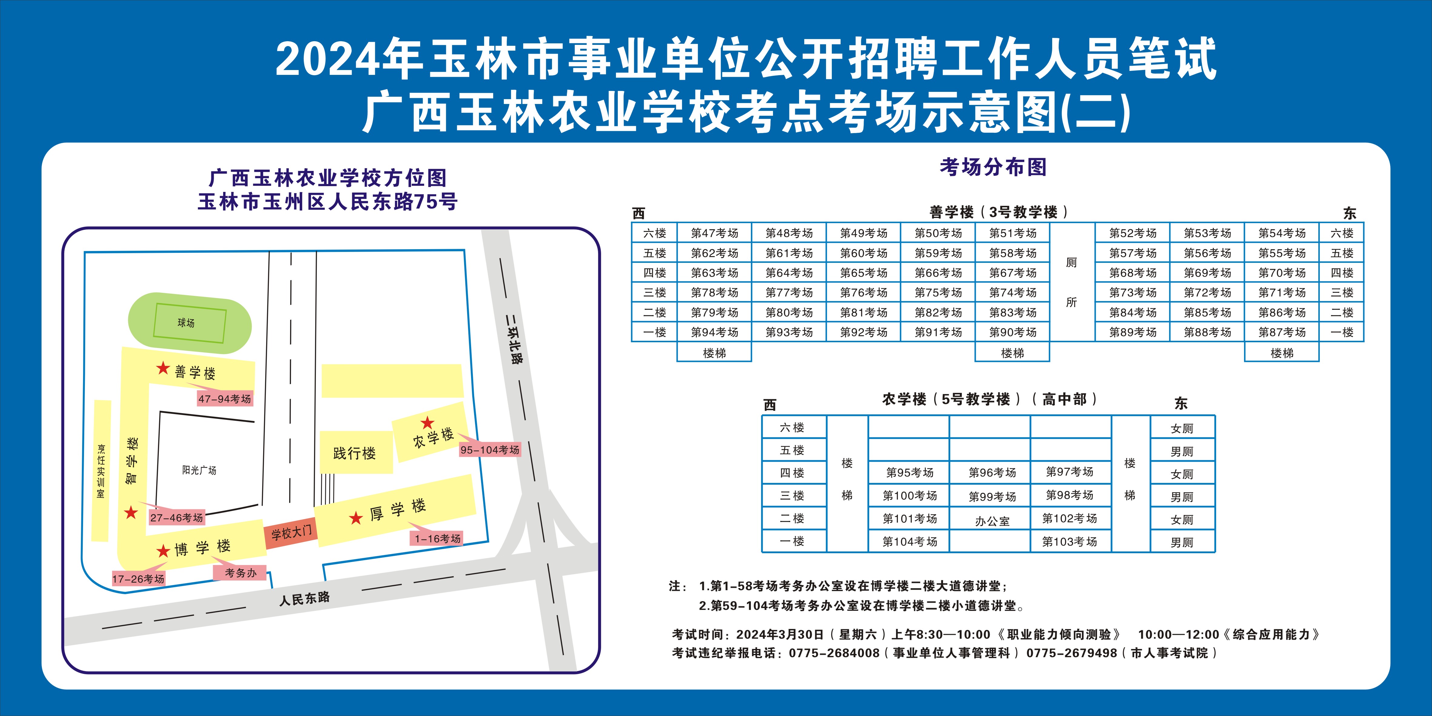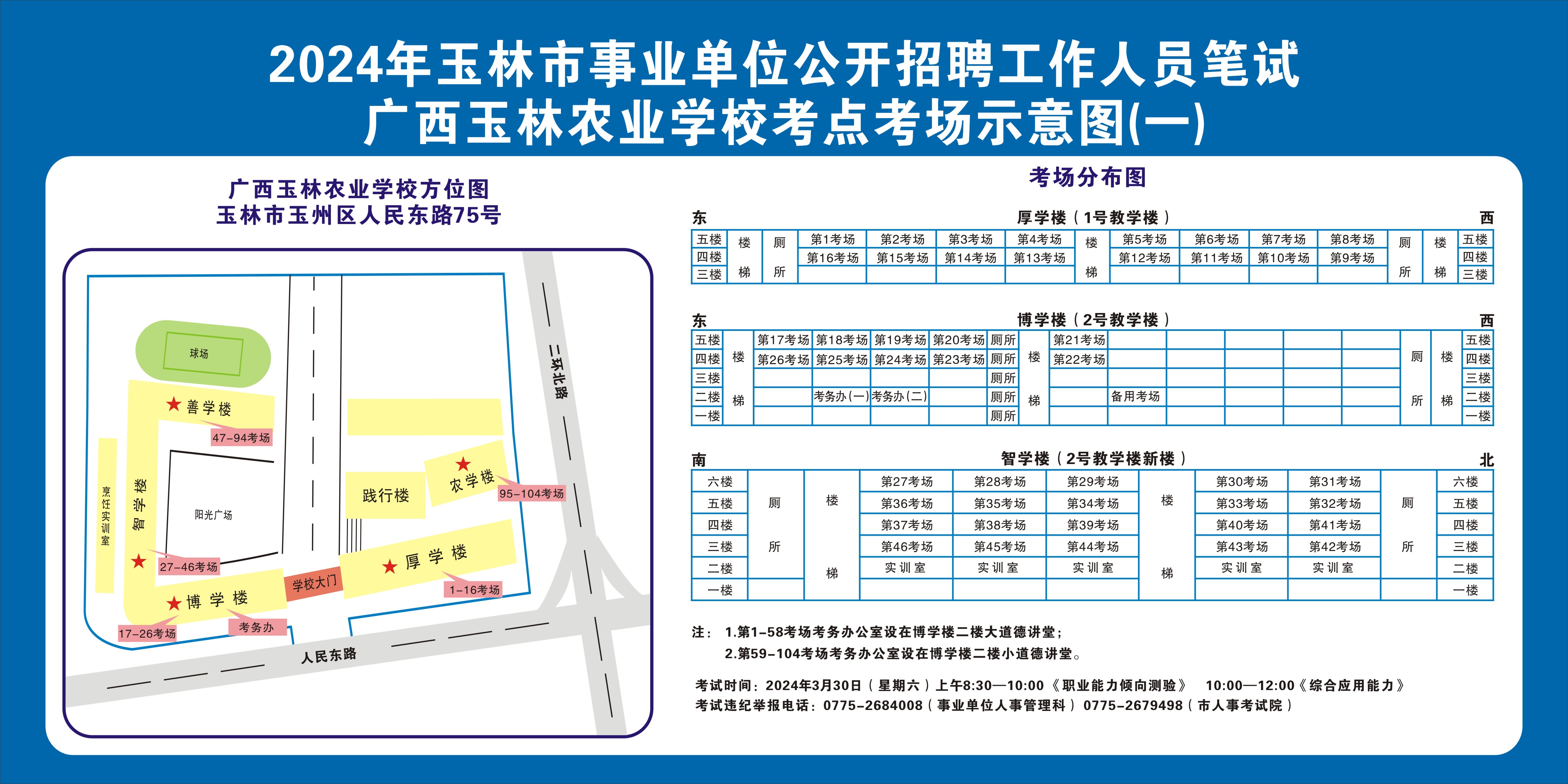 需要特別注意的是:玉林市第一職業(yè)中等專業(yè)學(xué)??键c是設(shè)在該校的東校區(qū)(人民東路東235號);玉林市第一中學(xué)考點是設(shè)在該校的運嶺路校區(qū)(二環(huán)北路1228號)!