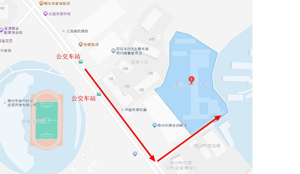 公交車參考:10路、32路、49路、49路延長線、蒼梧城鄉(xiāng)6路。進(jìn)入梧州學(xué)院校區(qū)統(tǒng)一在東大門進(jìn)入,考點門口處于交通干道,送考車輛只能在東門外短暫停留,南門及其他門不得進(jìn)入無法核驗考生身份。