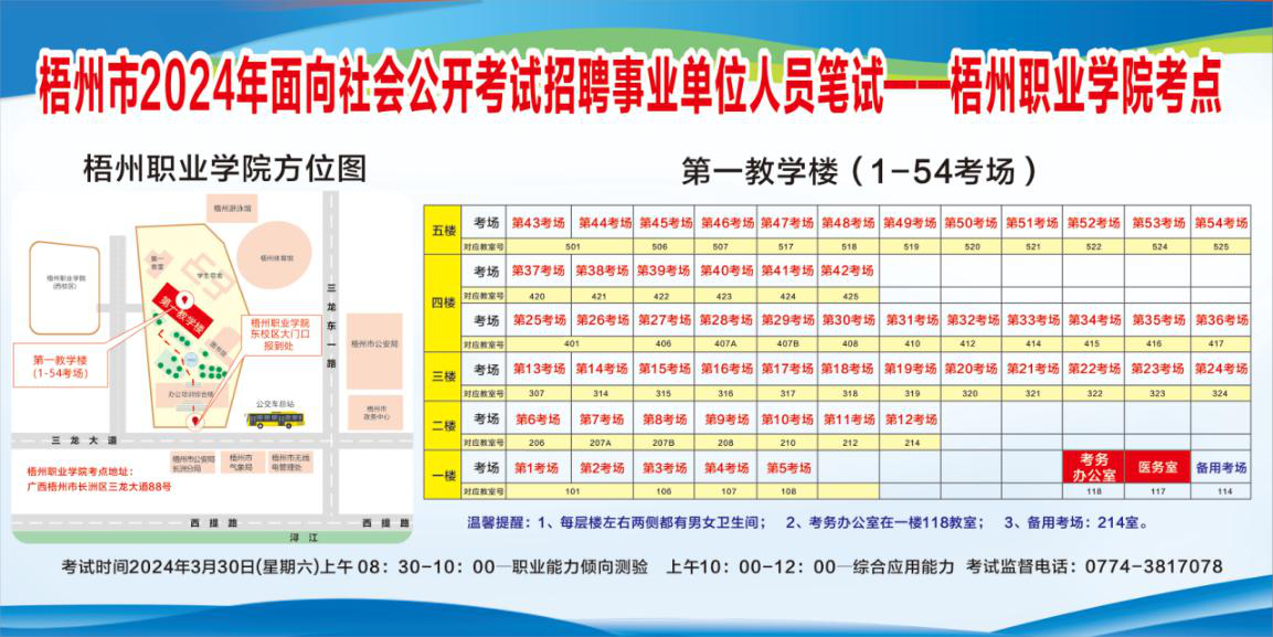 廣西2024年度事業(yè)單位公開招聘工作人員公共科目筆試梧州考點指引