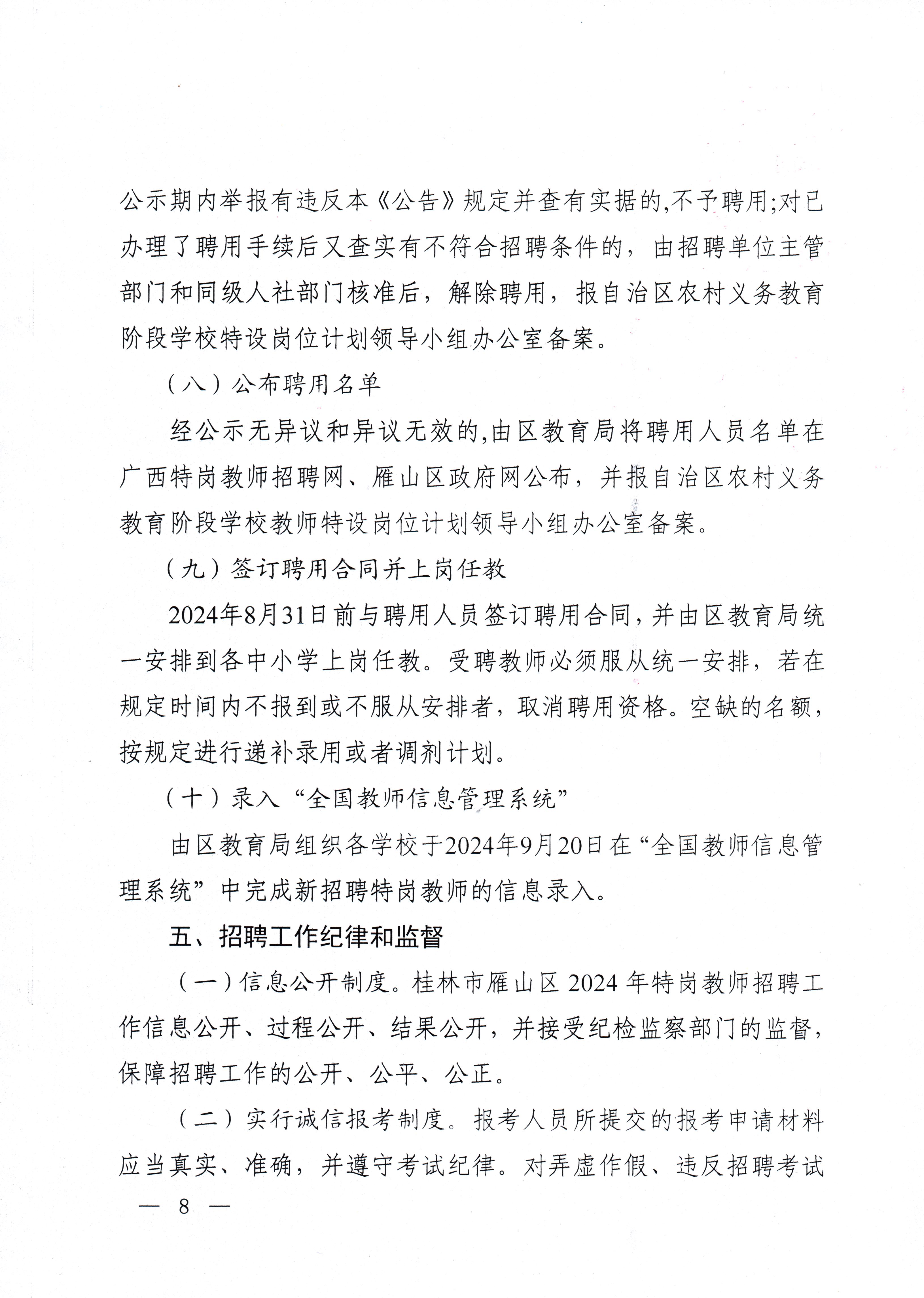 【教育局公告】桂林市雁山區(qū)2024年特崗教師招聘公告