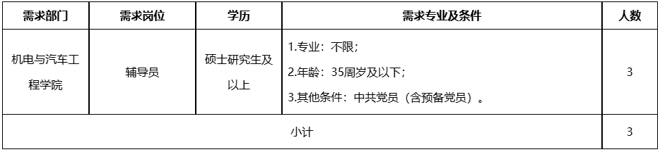 3.其他條件:要求本科為以下專業(yè)之一:交通運輸、車輛工程,新能源汽車工程技術(shù)、智能網(wǎng)聯(lián)汽車工程技術(shù)、汽車電子技術(shù)與檢測診斷專業(yè);具有副高職稱的,年齡放寬至40周歲及以下。