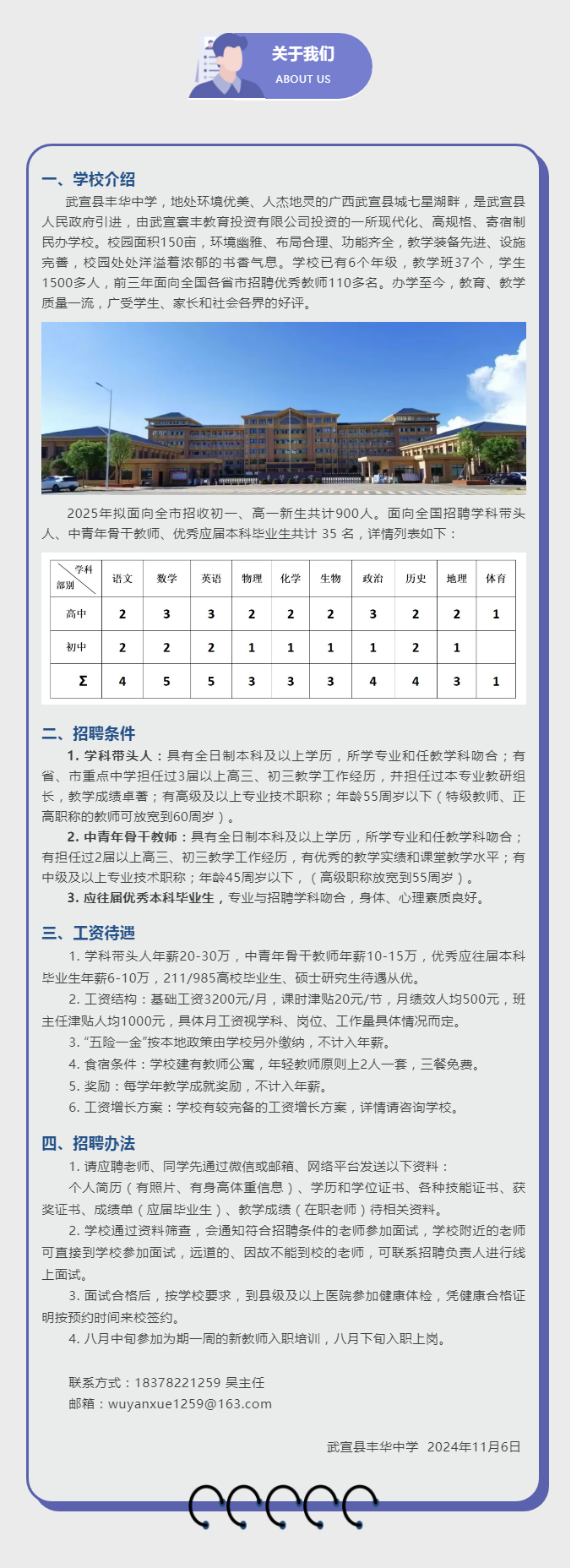 原文標題:廣西來賓市武宣縣豐華中學2025年教師招聘簡章