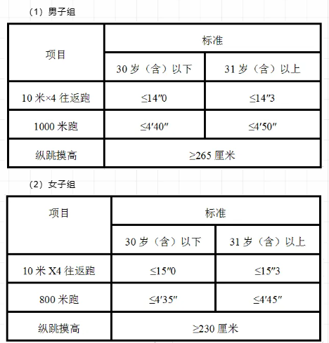 研究生及以上學(xué)歷報考人員參加體能測評三項內(nèi)容中有兩項達標(biāo)的,視為合格。非研究生及以上學(xué)歷報考人員體能測評三項全部達標(biāo)方為合格。