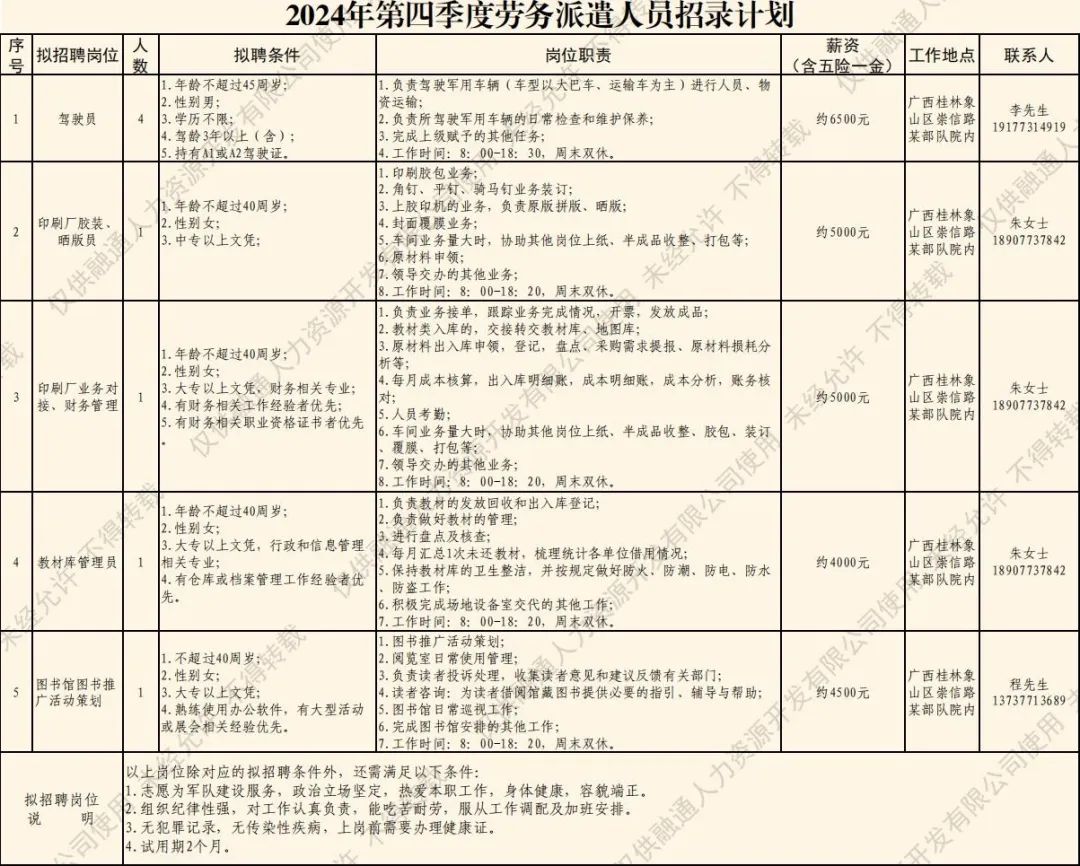 (五)公示錄用擬聘人員名單將在融通人力公司公眾號進行公示,公示期為5個工作日。公示無異議或者反映問題不影響聘用的擬聘人員,與融通人力資源開發(fā)有限公司簽訂勞務(wù)派遣勞動合同,辦理入職相關(guān)手續(xù)。