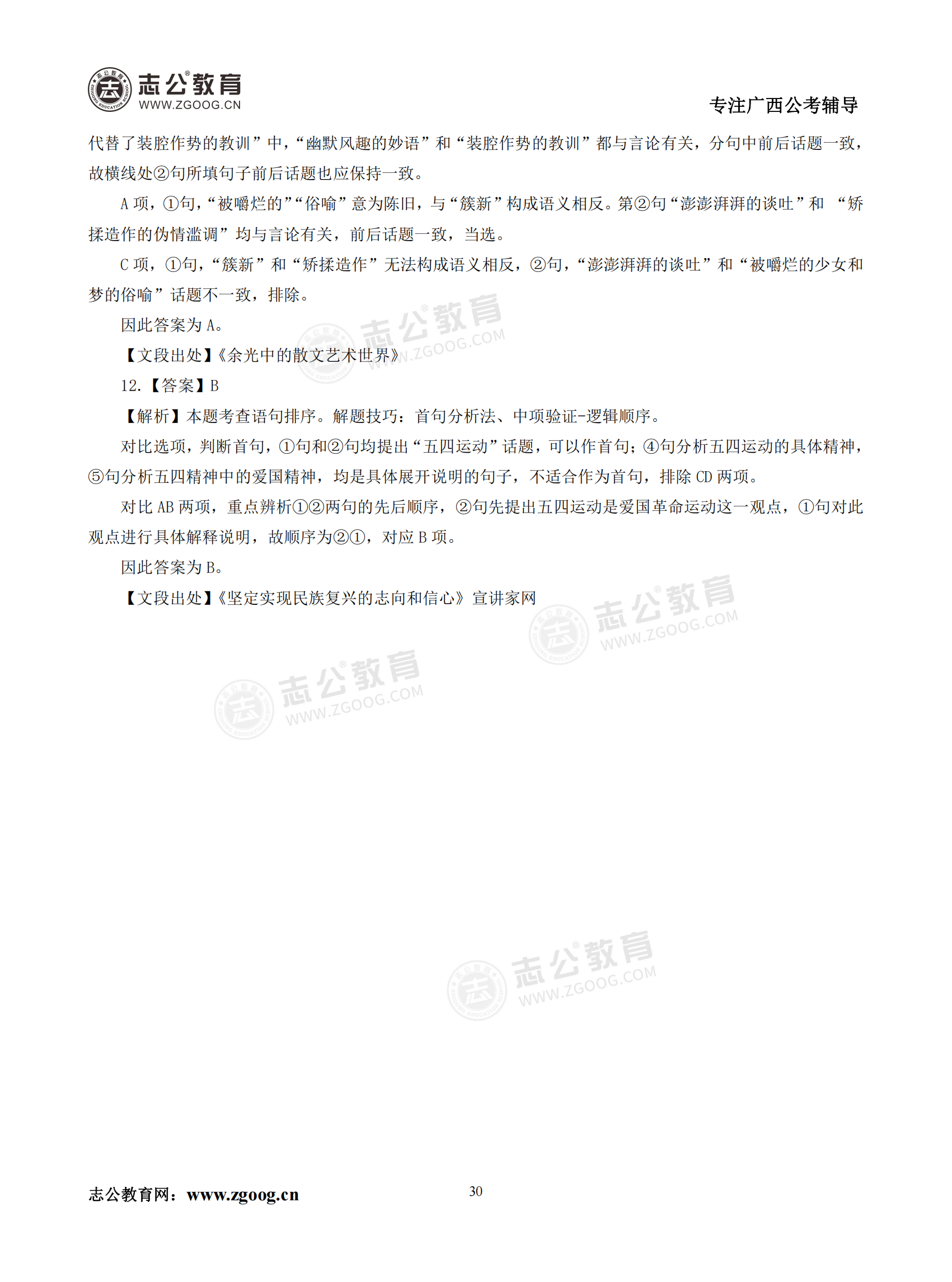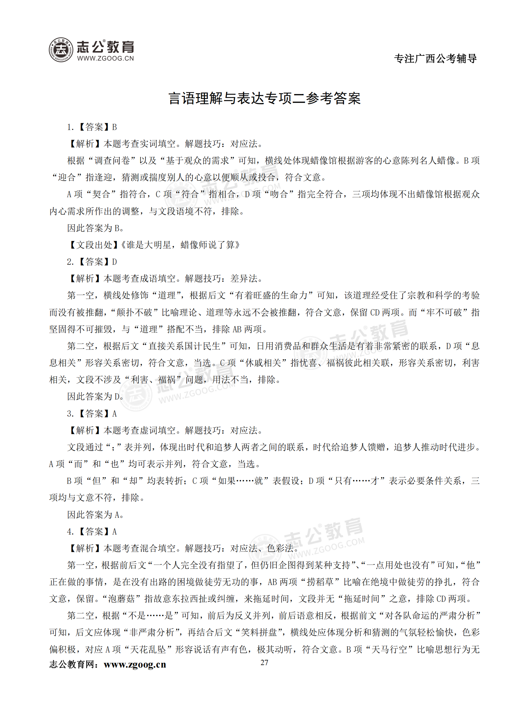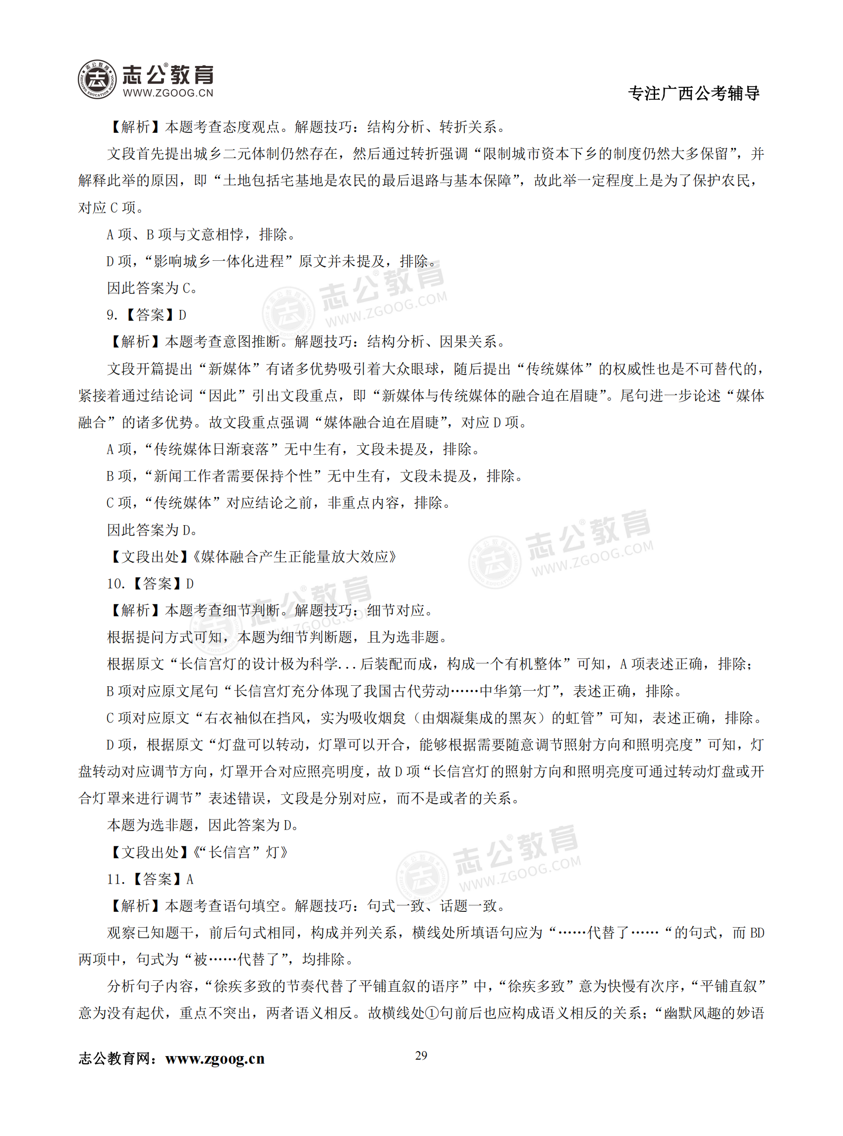 【公考模塊練習】言語理解題二(答案)