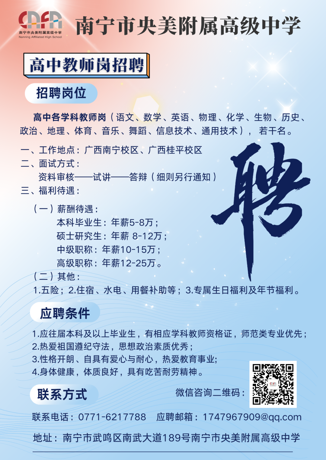 2025南寧市央美附屬高級中學(xué)春季學(xué)期招聘高中教師
