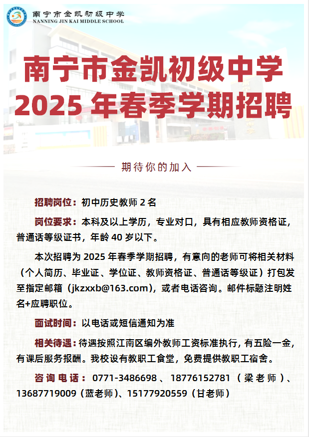 2025年南寧市金凱初級(jí)中學(xué)春季學(xué)期招聘