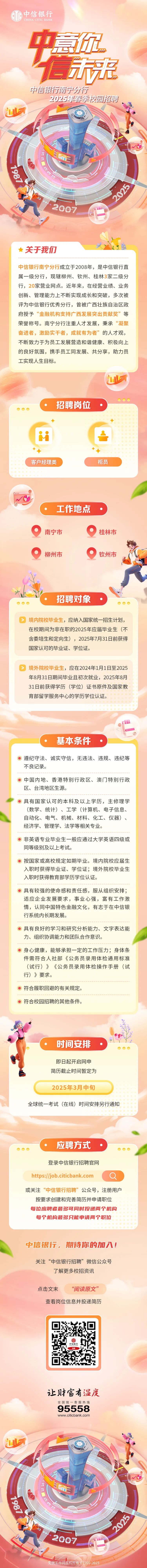 原文標(biāo)題:2025年中信銀行南寧分行春季校園招聘