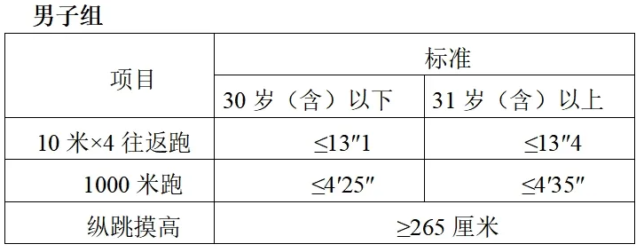 研究生及以上學(xué)歷報考人員參加體能測試三項內(nèi)容中有兩項達(dá)標(biāo)的,視為合格。非研究生及以上學(xué)歷報考人員體能測試三項全部達(dá)標(biāo)方為合格。