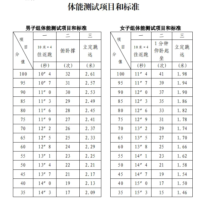 2.體能測試:參照人民警察招錄標準執(zhí)行,體能測試三項全部達標的,方為合格。(詳見附件2)