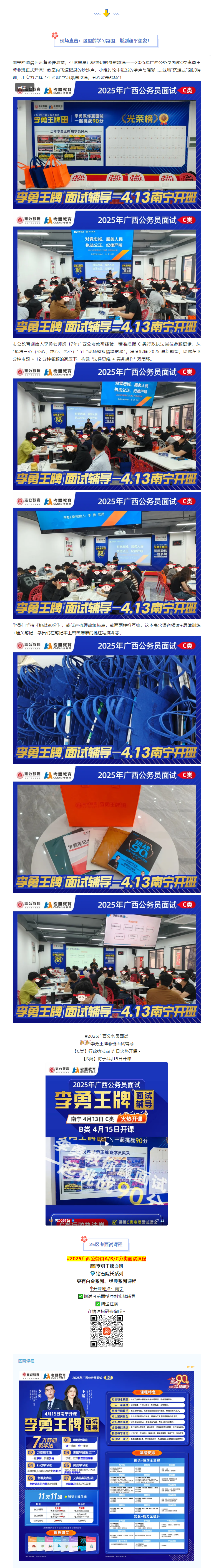 2025年廣西公務(wù)員面試戰(zhàn)役已打響!想在C類崗位面試中一舉奪魁?4月13日,南寧考生翹首以盼的 【李勇王牌®班面試輔導(dǎo)C類課程】 火熱開課!這里沒(méi)有枯燥的理論堆砌,只有 “全員沉浸、全程高能” 的實(shí)戰(zhàn)練兵場(chǎng),助你挑戰(zhàn)面試90分!