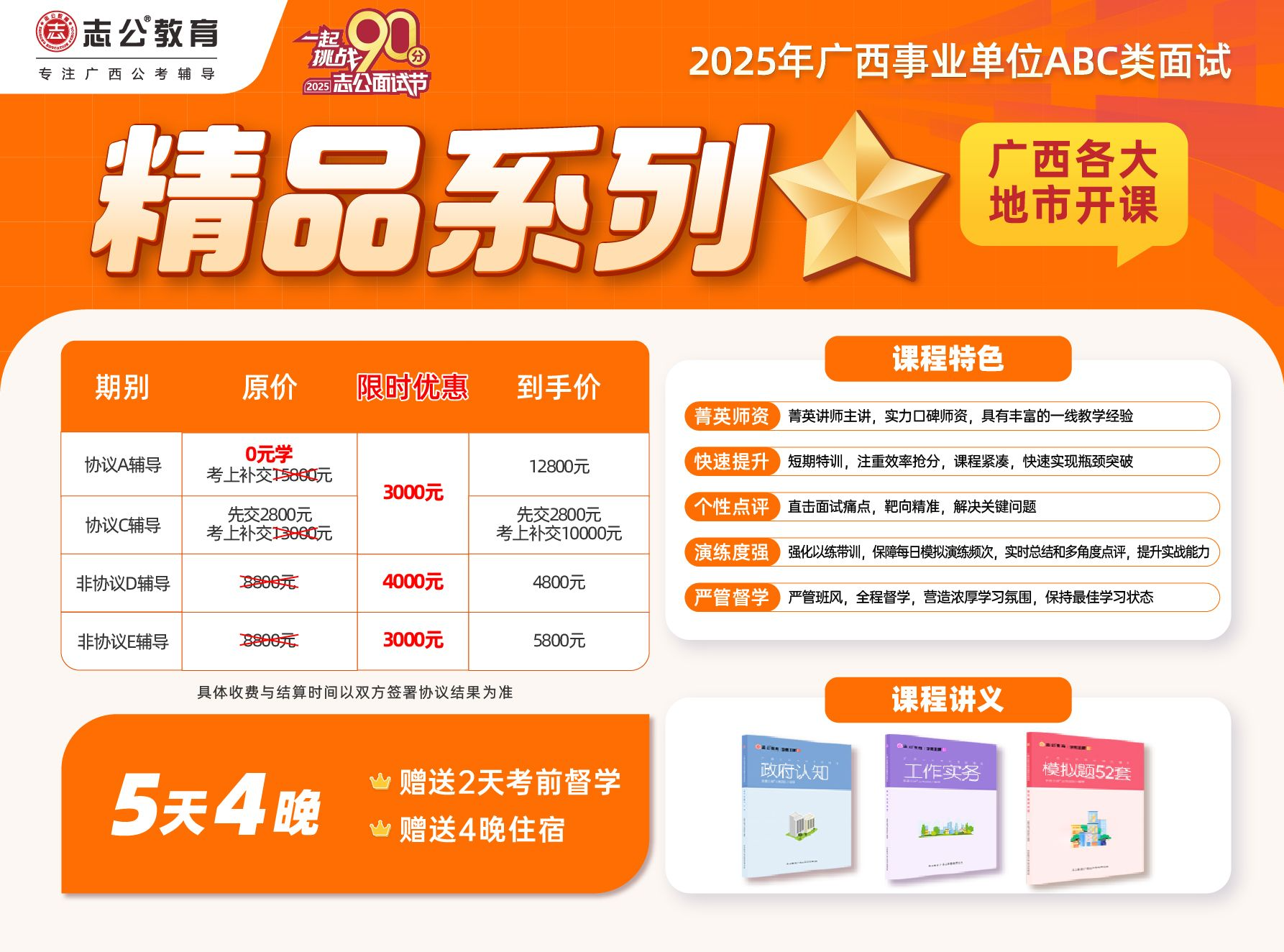 我們的精品系列課程包括協(xié)議A輔導(dǎo)、協(xié)議C輔導(dǎo)、非協(xié)議D輔導(dǎo)和非協(xié)議E輔導(dǎo)四個(gè)類別,每個(gè)類別都有不同的價(jià)格和優(yōu)惠,以滿足不同考生的需求。