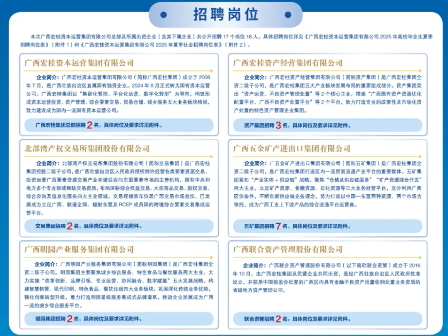 原文標(biāo)題:廣西宏桂資本運(yùn)營(yíng)集團(tuán)有限公司2025年夏季招聘啟事