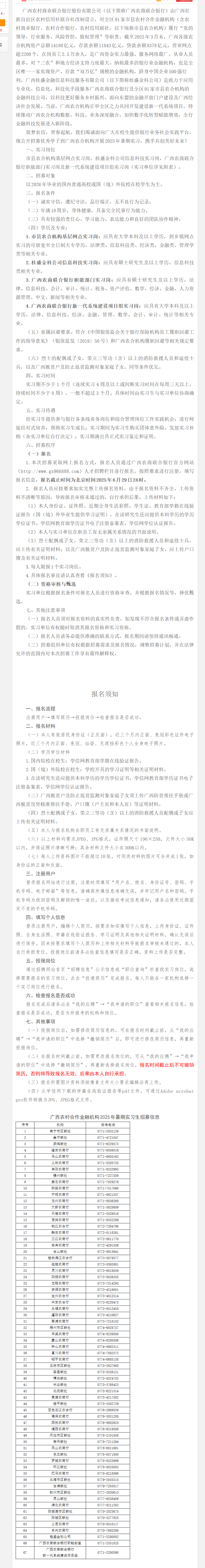 廣西農(nóng)村合作金融機(jī)構(gòu)2025年暑期實(shí)習(xí)生招募啟事