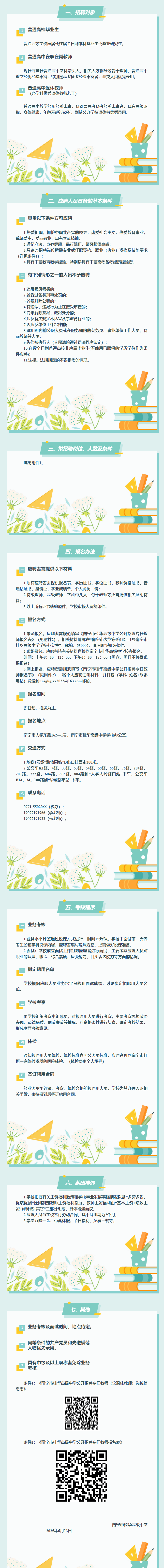 南寧市桂華高級中學2025年公開招聘高中各學科專任教師(含退休教師)的公告