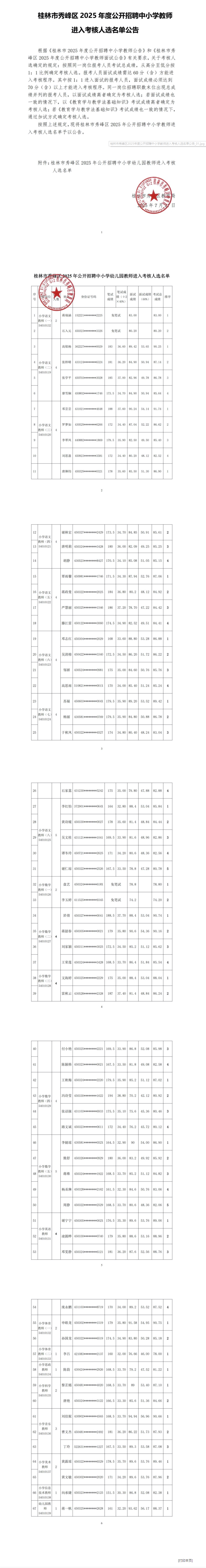 桂林市秀峰區(qū)2025年度公開(kāi)招聘中小學(xué)教師進(jìn)入考核人選名單公告