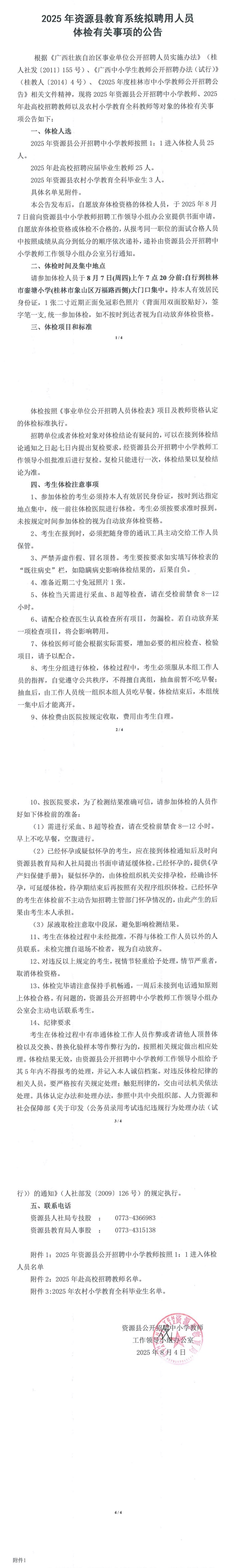 2025年資源縣教育系統(tǒng)擬聘用人員體檢有關事項的公告
