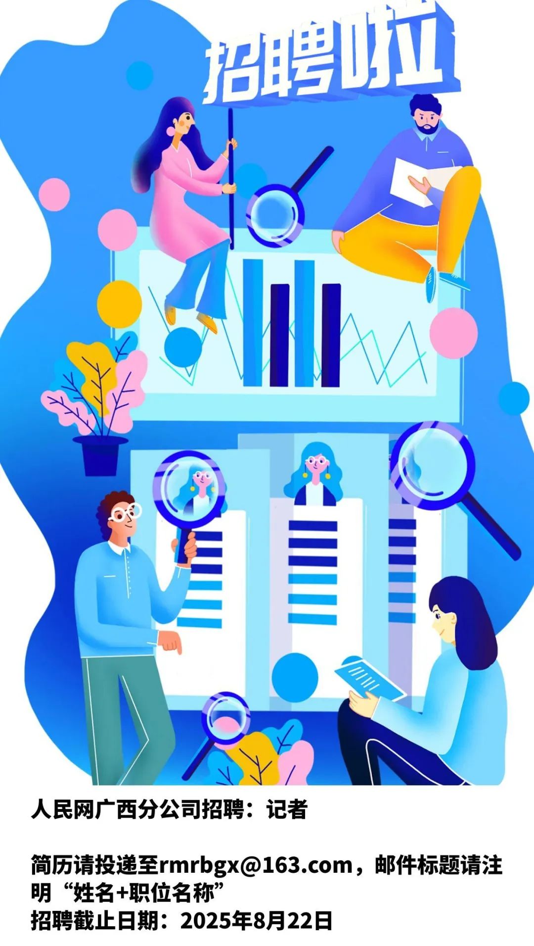 簡(jiǎn)歷請(qǐng)投遞至rmrbgx@163.com,郵件標(biāo)題請(qǐng)注明“姓名+職位名稱”,招聘截止日期:2025年8月22日。