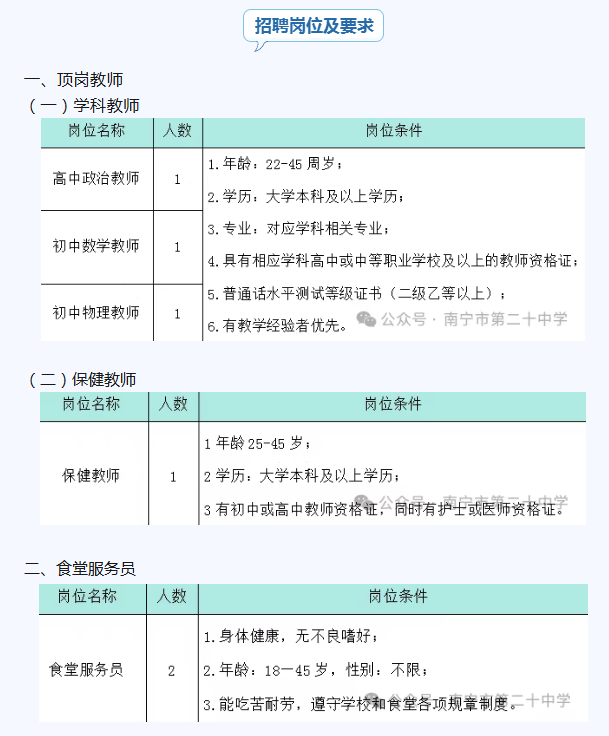 原文標(biāo)題:南寧市第二十中學(xué)招聘啟事