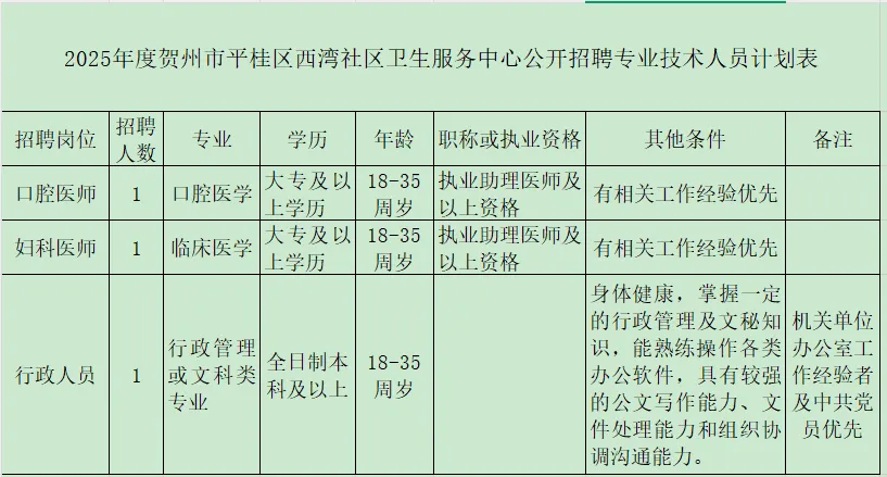 原文標題:賀州市平桂區(qū)西灣社區(qū)衛(wèi)生服務中心招聘公告