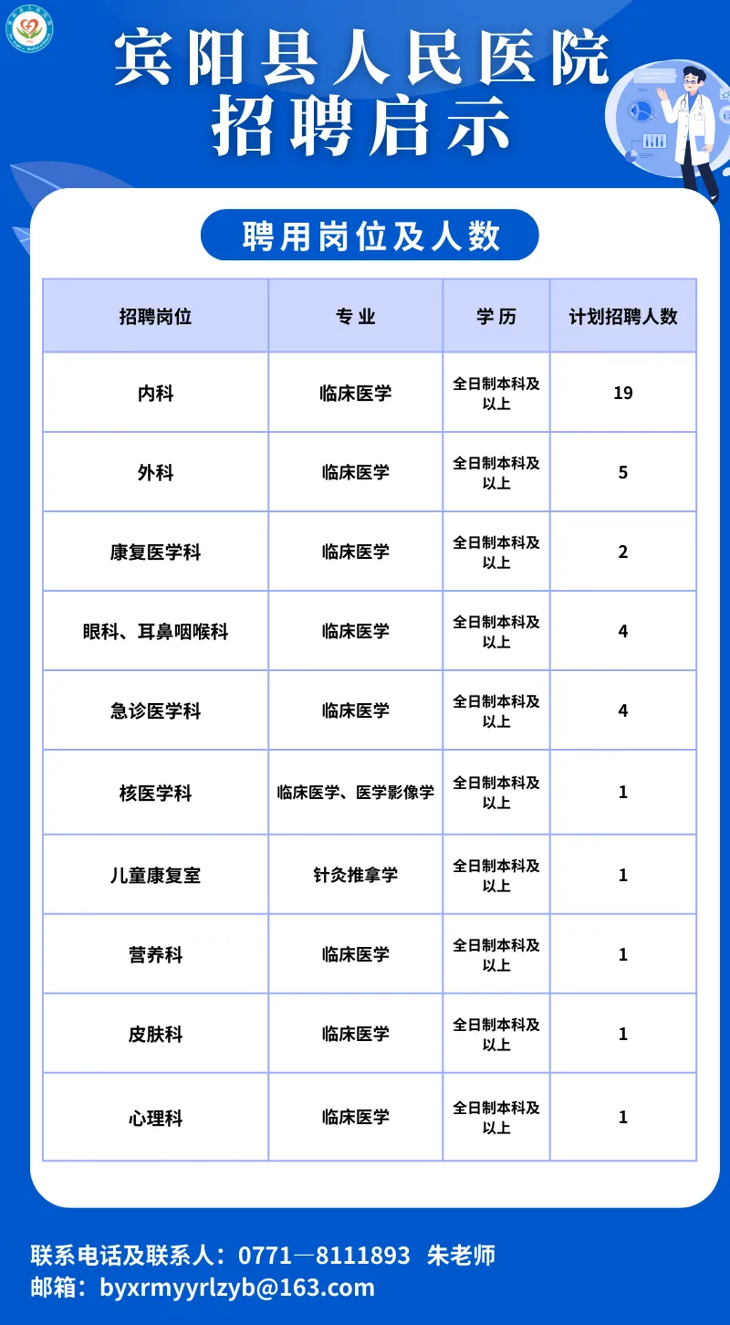 原文標題:【招聘啟示】歡迎您加入賓陽縣人民醫(yī)院大家庭!