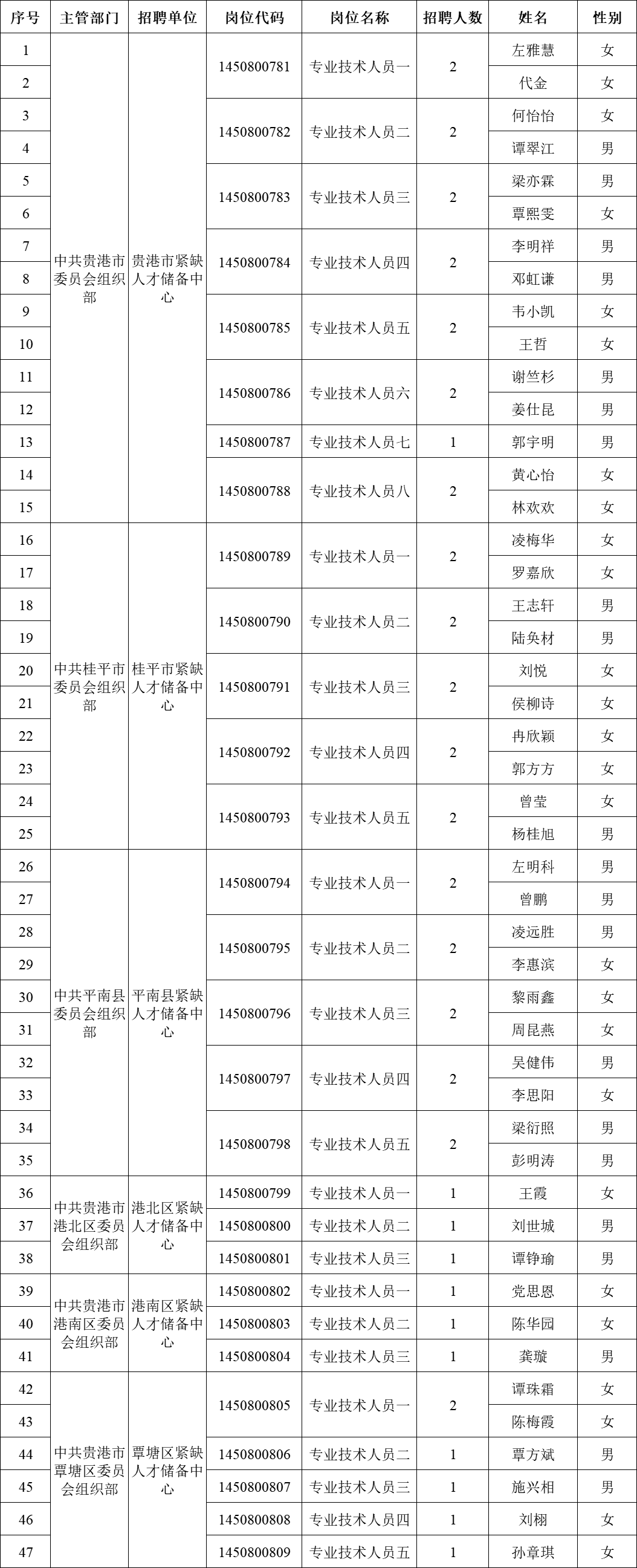 2025年貴港市引進重點領域重點產業(yè)急需緊缺(高層次)人才進入考察人員名單公告