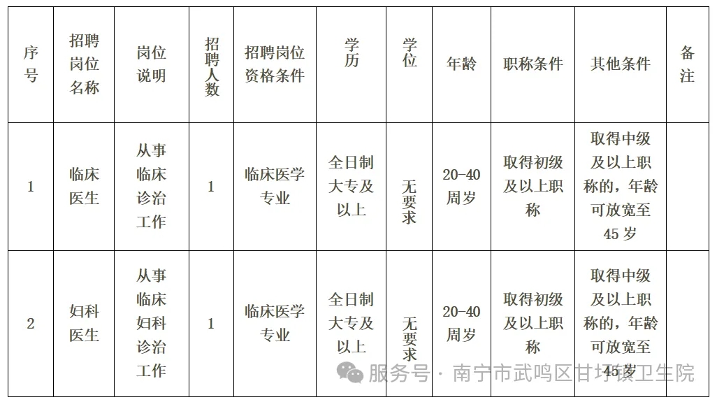原文標(biāo)題:南寧市武鳴區(qū)甘圩鎮(zhèn)衛(wèi)生院2025年第三次公開招聘編外工作人員公告