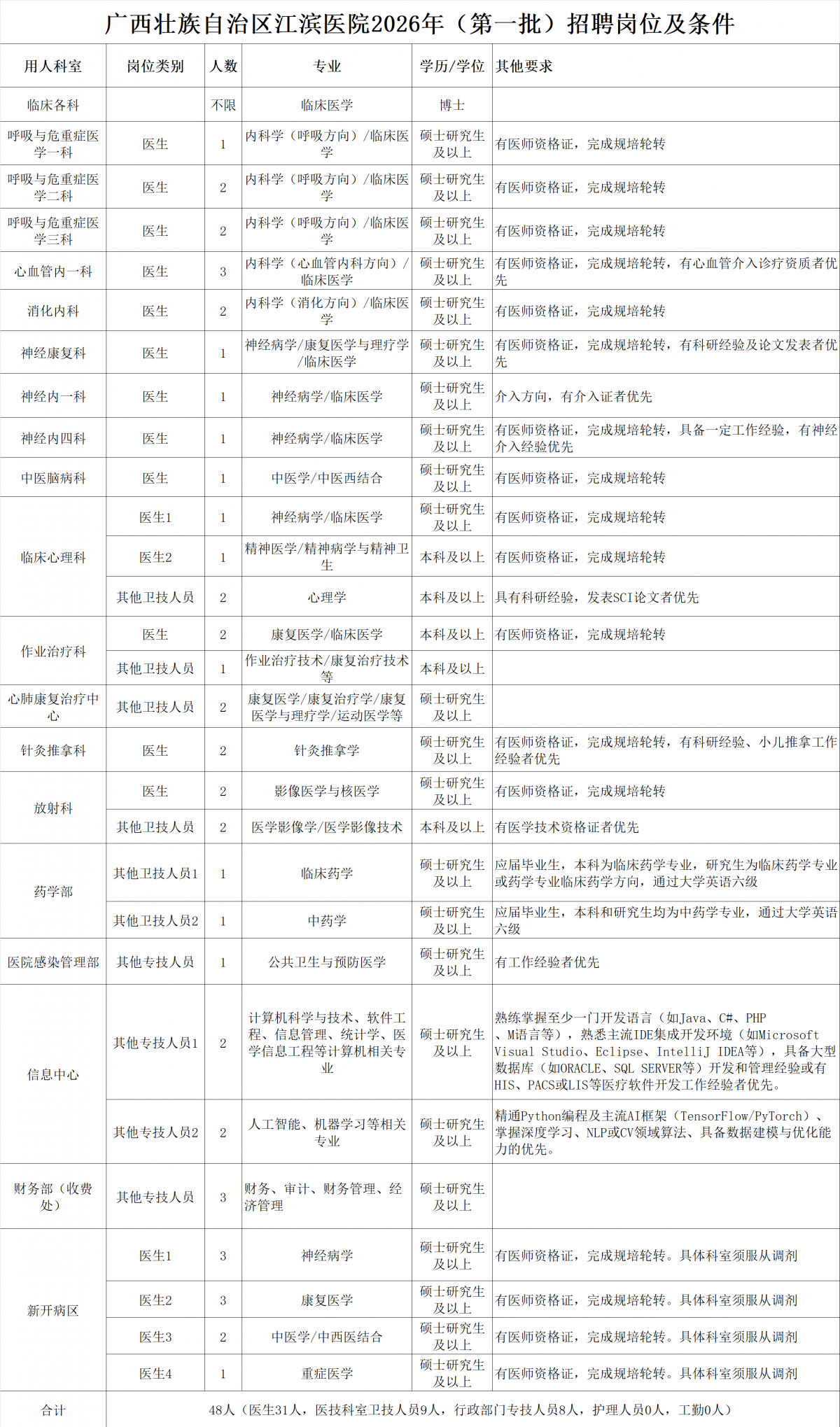 1.《廣西壯族自治區(qū)江濱醫(yī)院招聘報名表》;