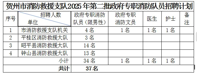原文標(biāo)題:賀州市消防救援支隊(duì)2025年第二次公開招錄政府專職消防隊(duì)員的公告