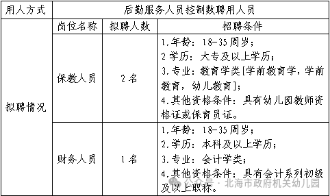 符合條件的應(yīng)聘人員請(qǐng)于2025年11月4日至11月10日期間進(jìn)行報(bào)名,由本人填寫(xiě)《北海市政府機(jī)關(guān)幼兒園后勤人員控制數(shù)工作人員報(bào)名登記表》(見(jiàn)附件),連同身份證、畢業(yè)證書(shū)及崗位要求的資格證等掃描件發(fā)送至郵箱bhszfjy@163.com,逾期不予受理。