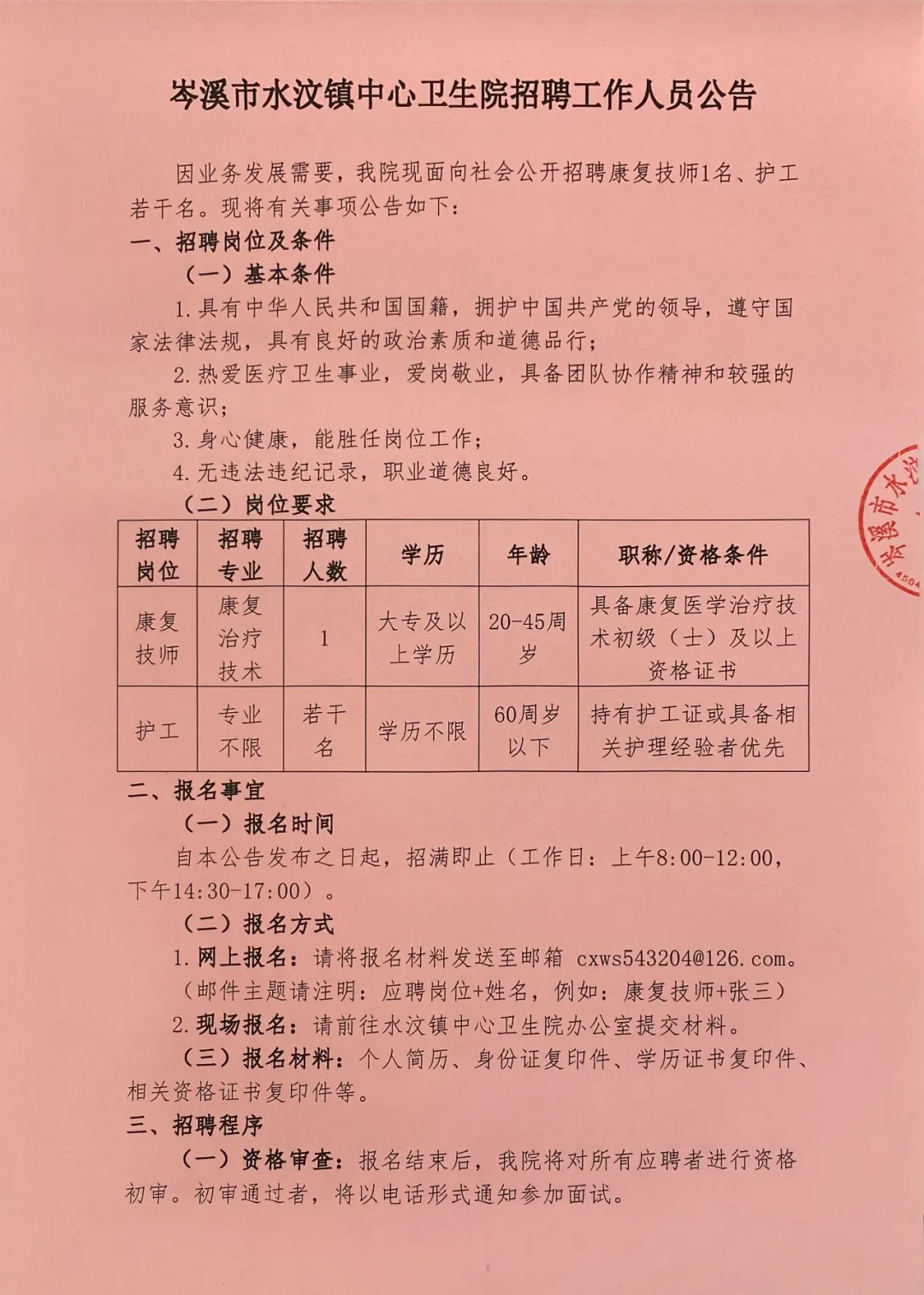 2025年梧州岑溪市水汶鎮(zhèn)中心衛(wèi)生院招聘護(hù)士和康復(fù)技師
