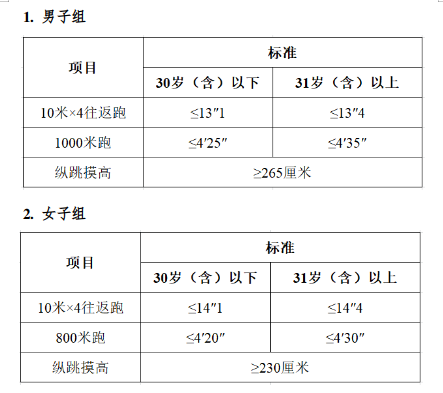 備注:年齡計(jì)算時(shí)間截止到參加體能測評當(dāng)月。