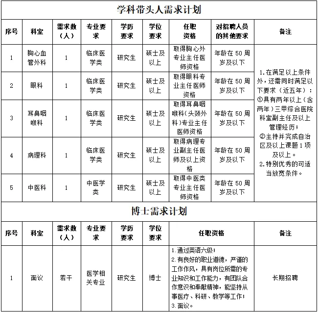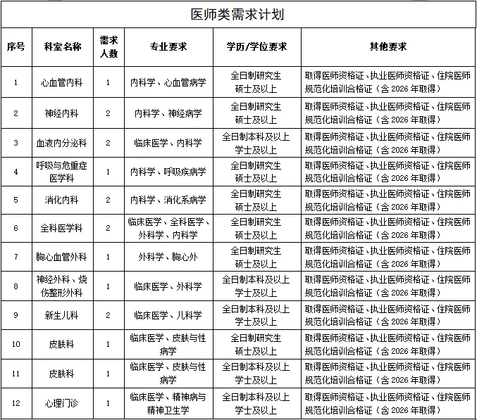 為進(jìn)一步完善現(xiàn)有人才隊伍,促進(jìn)醫(yī)院學(xué)科發(fā)展,提升醫(yī)院綜合實力,因業(yè)務(wù)發(fā)展需要,現(xiàn)面向社會進(jìn)行公開招聘,具體招聘崗位如下:
